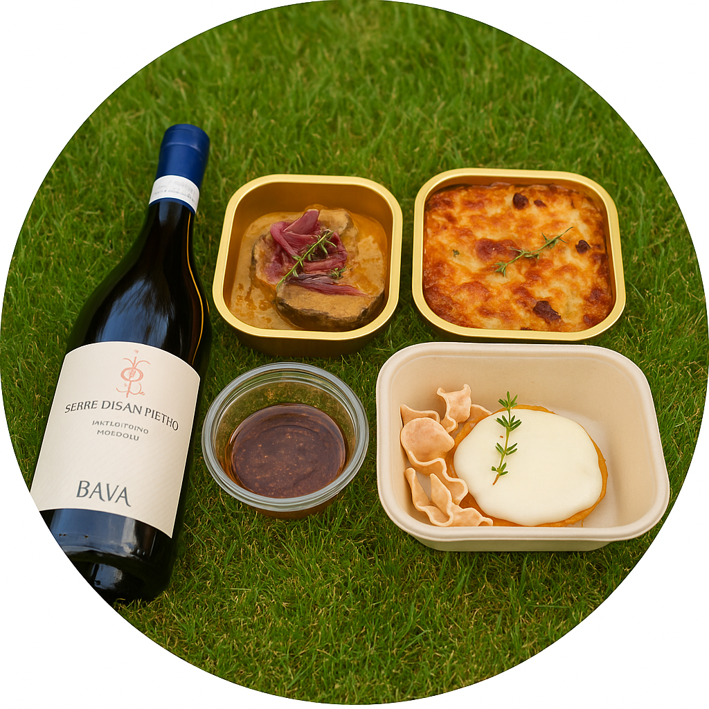 Portiamo a casa tua – o nel tuo angolo preferito delle Langhe – piatti di alta cucina, pronti da gustare.